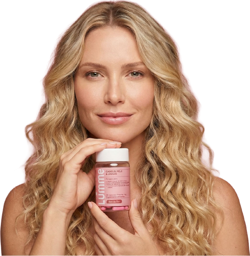 Começou com a queda de cabelo, depois percebi minha pele opaca e minhas unhas sempre quebrando. Eu estava desanimada e me sentindo feia. Quando testei LUMME, os primeiros sinais apareceram nas minhas unhas, depois no brilho da pele e, por fim, no volume do cabelo. Foi a primeira vez que notei uma transformação que começava dentro e aparecia no espelho depois