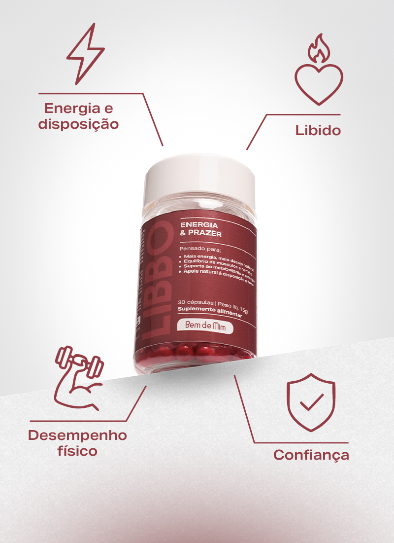 Desenvolvido para mulheres que querem viver cada momento com intensidade, LIBBO aumenta a energia, libido e desperta o desejo, ajudando você a se sentir mais confiante, viva e conectada com o próprio corpo.